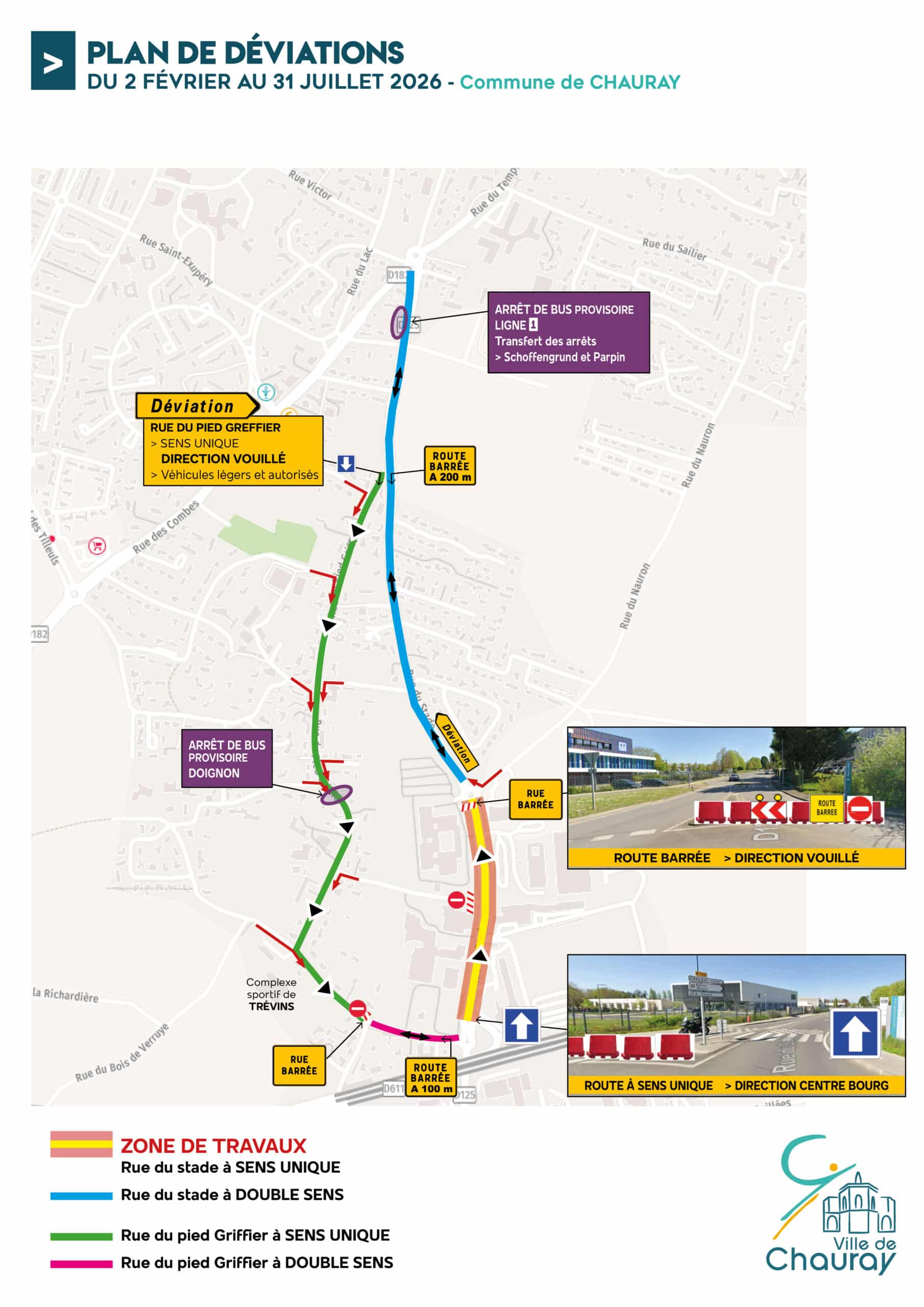 - Les arrêts Schöffengrund et Chauray Parpin ne sont pas desservis. Arrêt le plus proche "Versaines" au niveau du n° 100 rue du Stade à Chauray.
