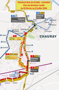 - Mise en sens unique de la rue du stade sur la zone de travaux (direction centre bourg)
