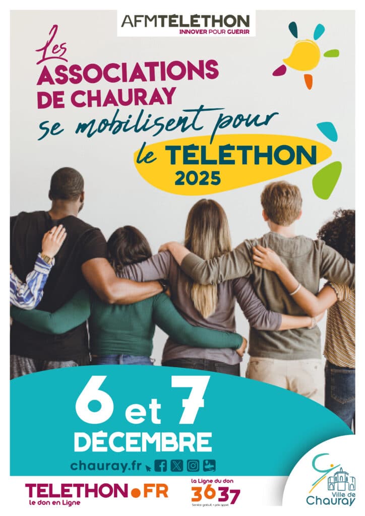 Cette année, la ville de Chauray se mobilise pour le Téléthon, et vous invite à participer à un grand week-end d’animations, les 6 et 7 décembre 2025 aux côtés de nombreuses associations chauraisiennes engagées pour la cause !